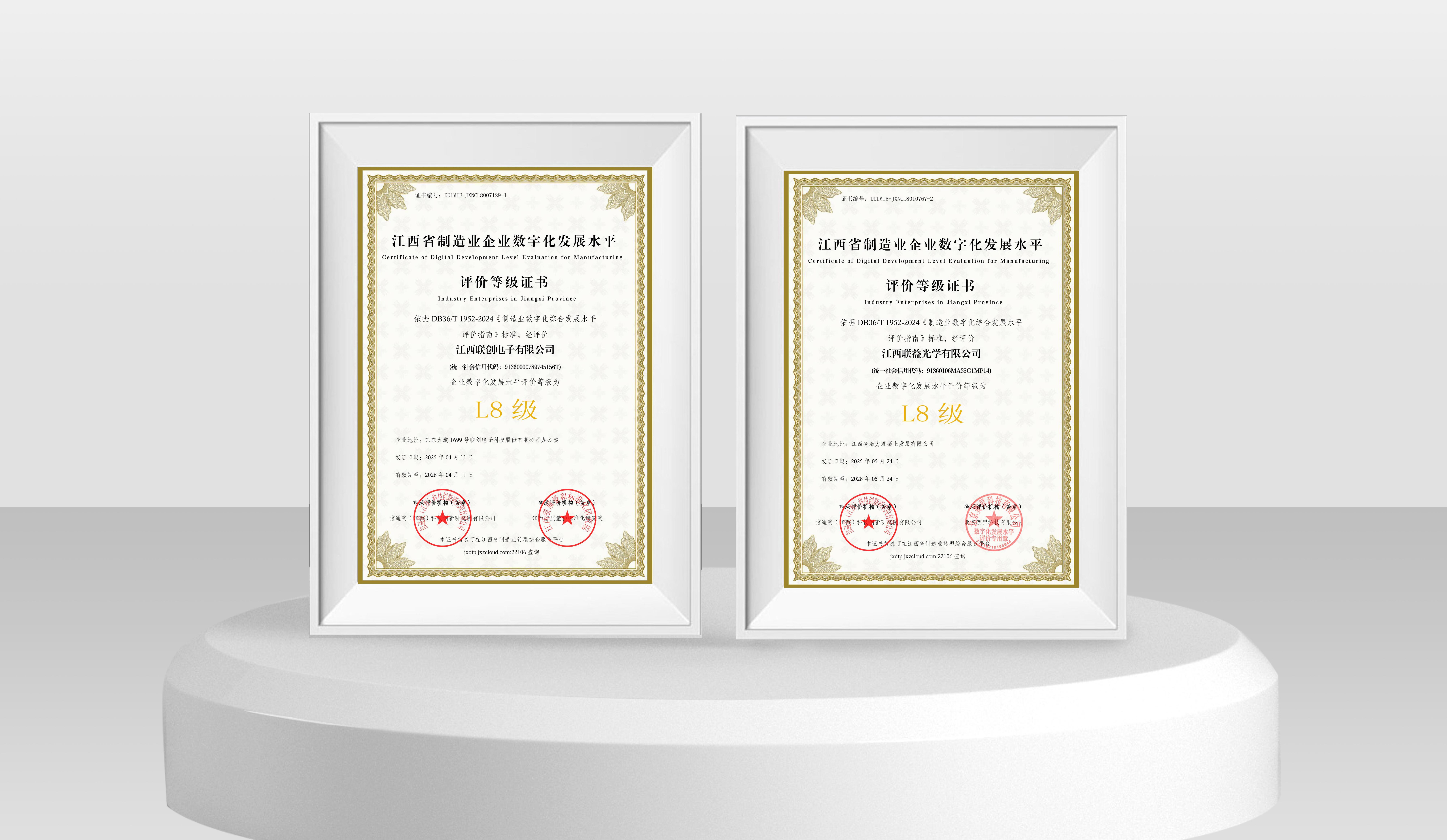 近日,联创电子科技股份有限公司旗下乐投官方网站/app/ios/安卓/在线/注册,(以下简称江西联创)与江西联益光学有限公司(以下简称江西联益)凭借深度集成与创新应用能力,在江西省制造业企业数字化发展水平等级评价中双双达到L8级水平,标志着两家企业在数字化转型领域已跻身全省“集成提升阶段”最高水平,为全省制造业智能化升级树立新标杆。
